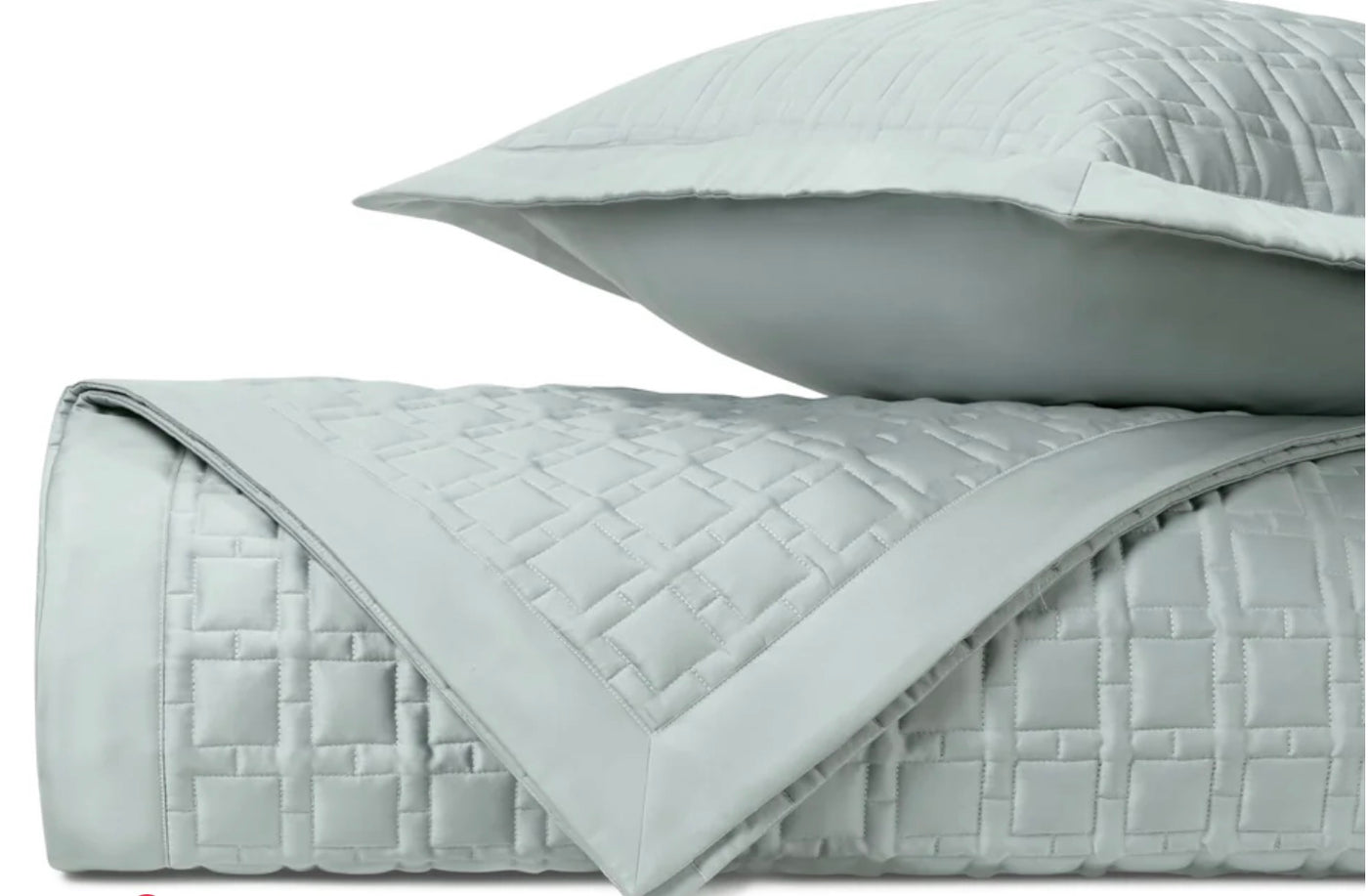 Aqua SC in Square Quilting. King Coverlet & 3 Euro Shams with 1.5" Flange.