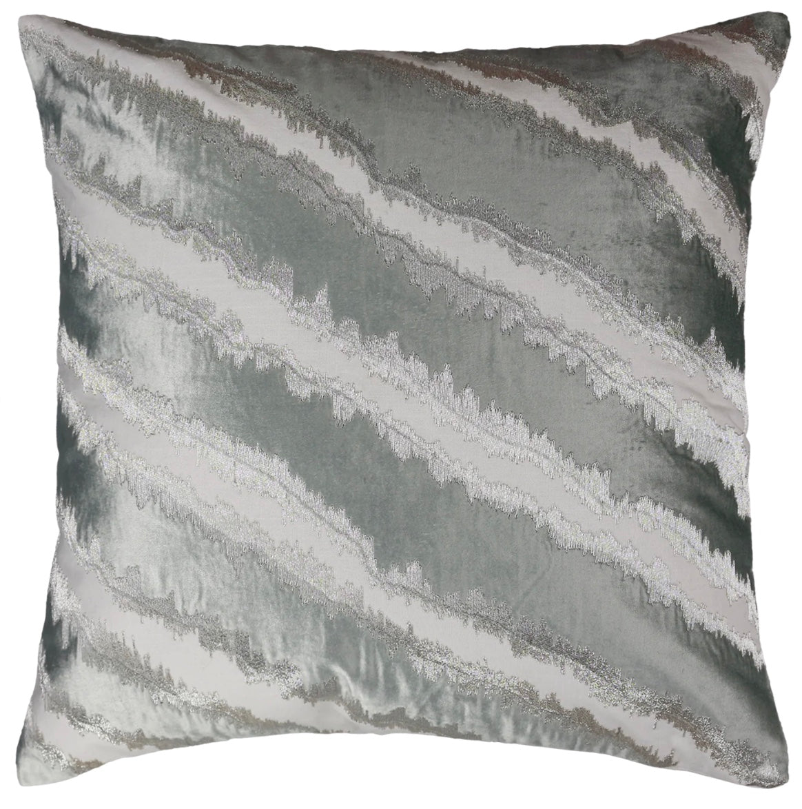 Creme Slub with Aqua Velvet & Silver Metallic Embroidery Pillow 22" x 22"
