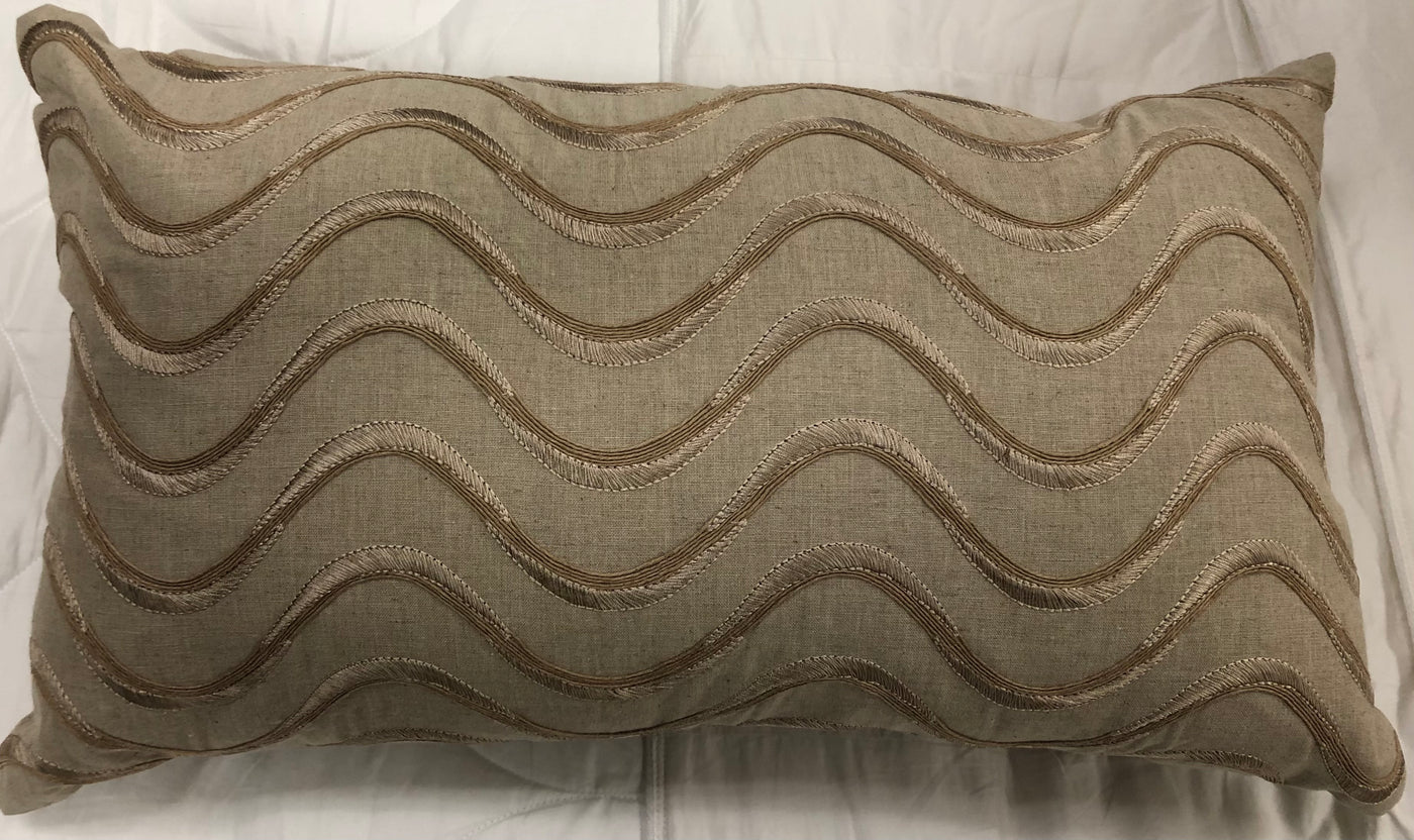 Natural Linen with Wave Embroidery Pillow 14" x 24"
