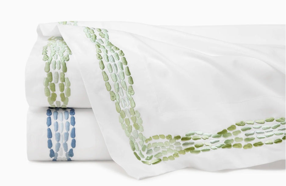 Sleek and modern, Catena’s hallmark lies in its minimalist chain motif, inspired by the timelessness of fine jewelry. Framing a canvas of pristine white percale, the design is embroidered with immaculate precision in five distinct colorways. Each selection features a two-tone embroidery technique, creating a sense of depth. Pair with Grande Hot...
