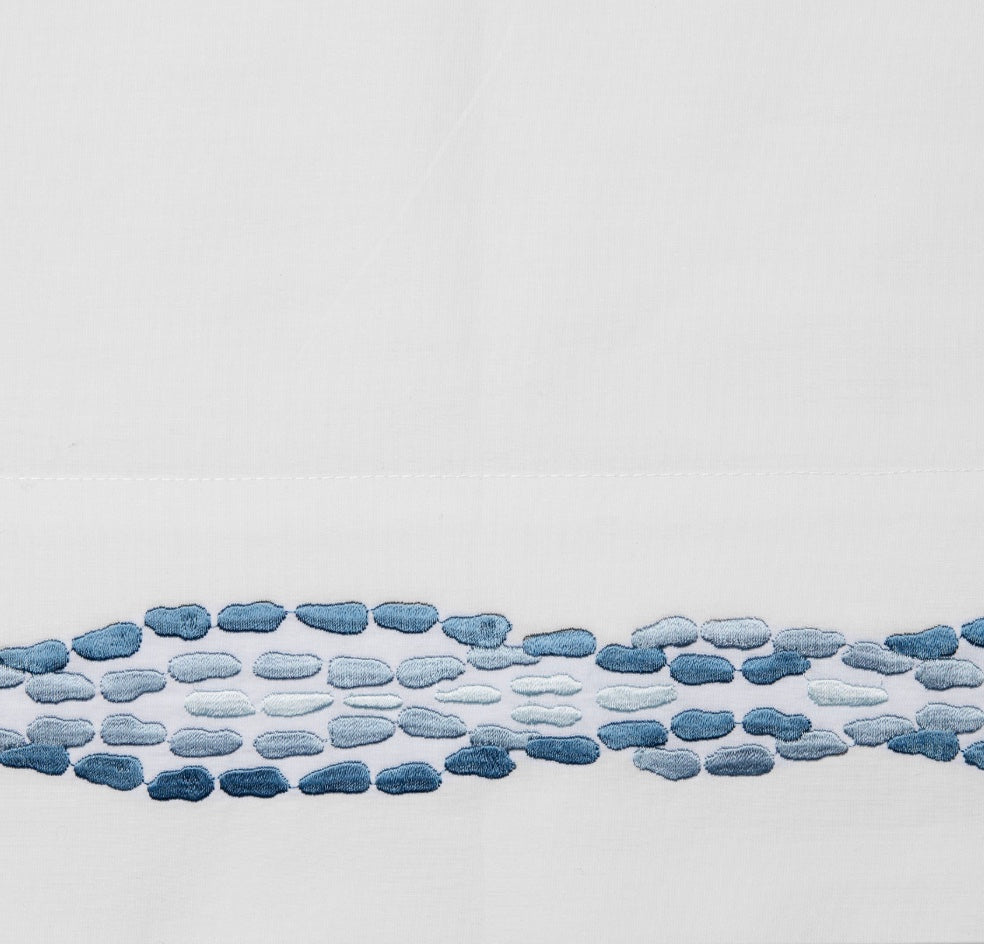 Made from 100% extra-long staple cotton in Portugal. The Soprano Sateen Sheeting Collection are soft, breathable and durable. Flat sheet and pillowcases feature a single row satin stitch embroidery on the hem - both have a 4" cuff Also available to order as duvets, shams and tailored bed skirts! (The dark blue in the bottom of the picture is no ...